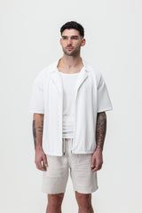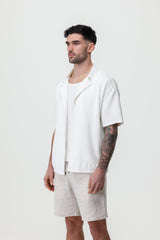 Introducing our Pleated Shirt in classic White. Made with a breathable material for ultimate comfort, this shirt is perfect for any occasion. Its timeless short sleeve silhouette pairs perfectly with our Pleated Trousers or Shorts in Black for a complete look. 100% Polyester.